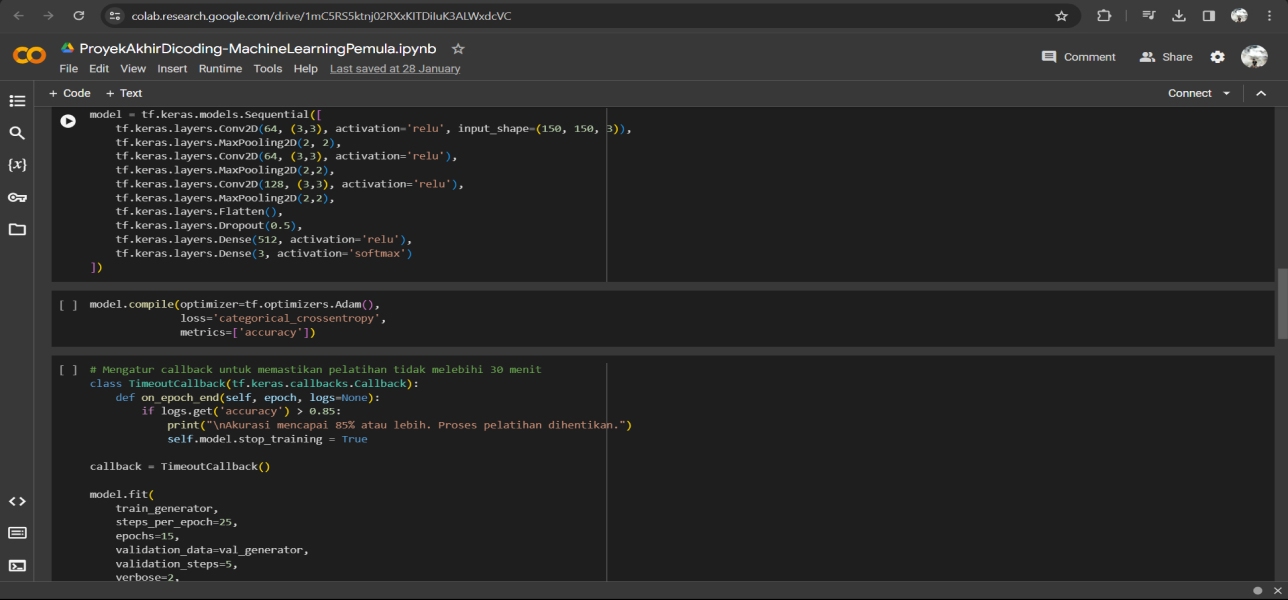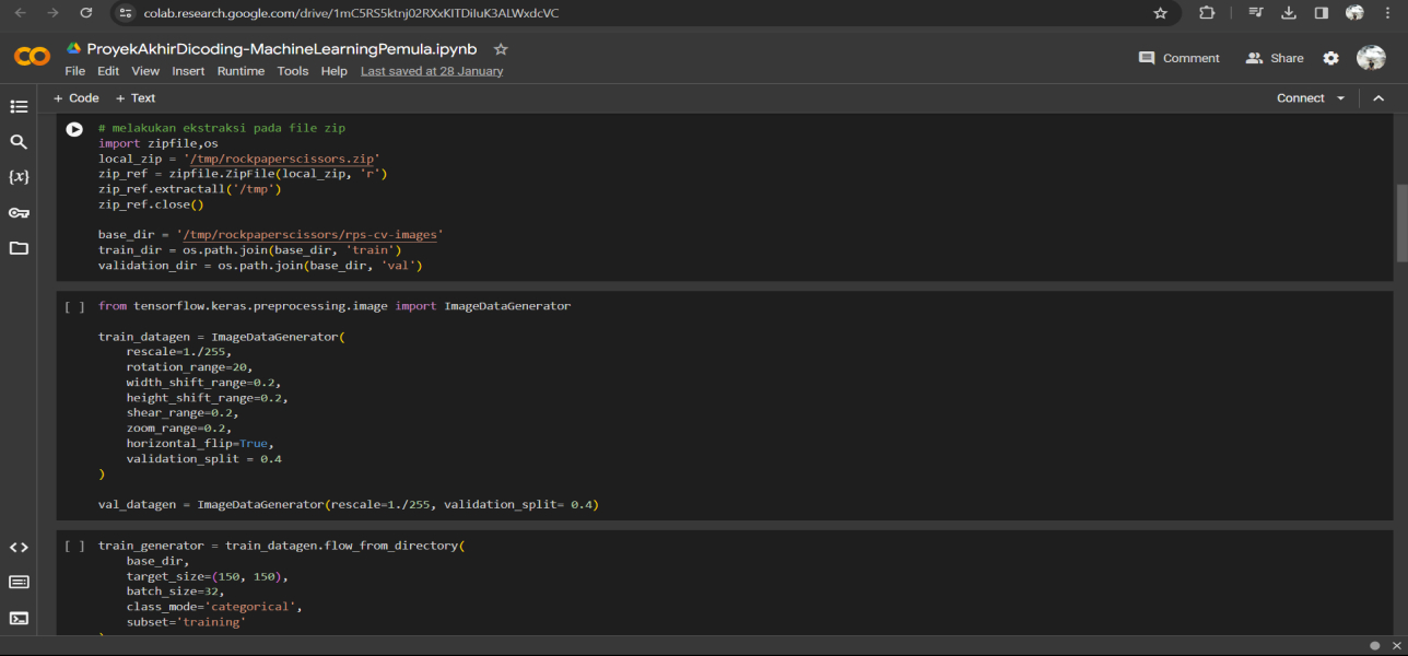 Model ini mampu mengenali bentuk tangan yang membentuk gunting, batu atau kertas. Dataset yang dipakai berjumlah 2.188 data dengan pembagian 40% untuk data validasi dan 60% untuk data training (data validasi berjumlah 874 data dan data training berjumlah 1314 data).